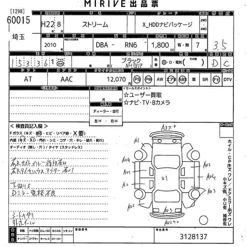 HONDA STREAM X_HDD NAVIGATION PACKAGE - лот 60015