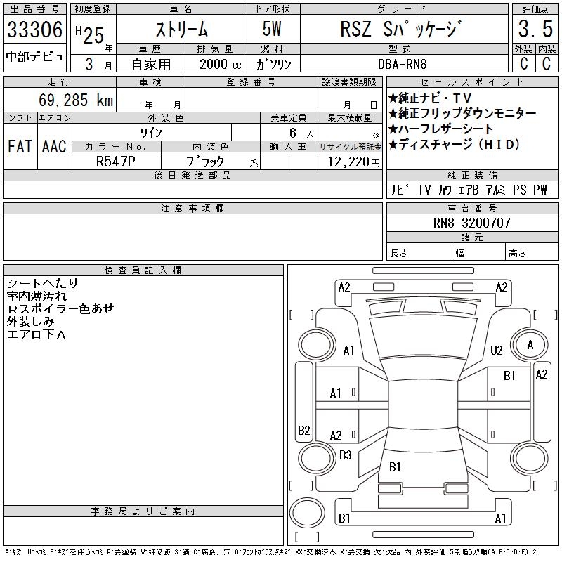 HONDA STREAM RSZ S PACKAGE - лот 33306