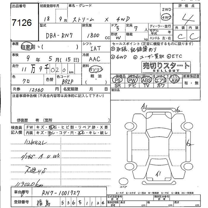 HONDA STREAM 4WD X - лот 7126