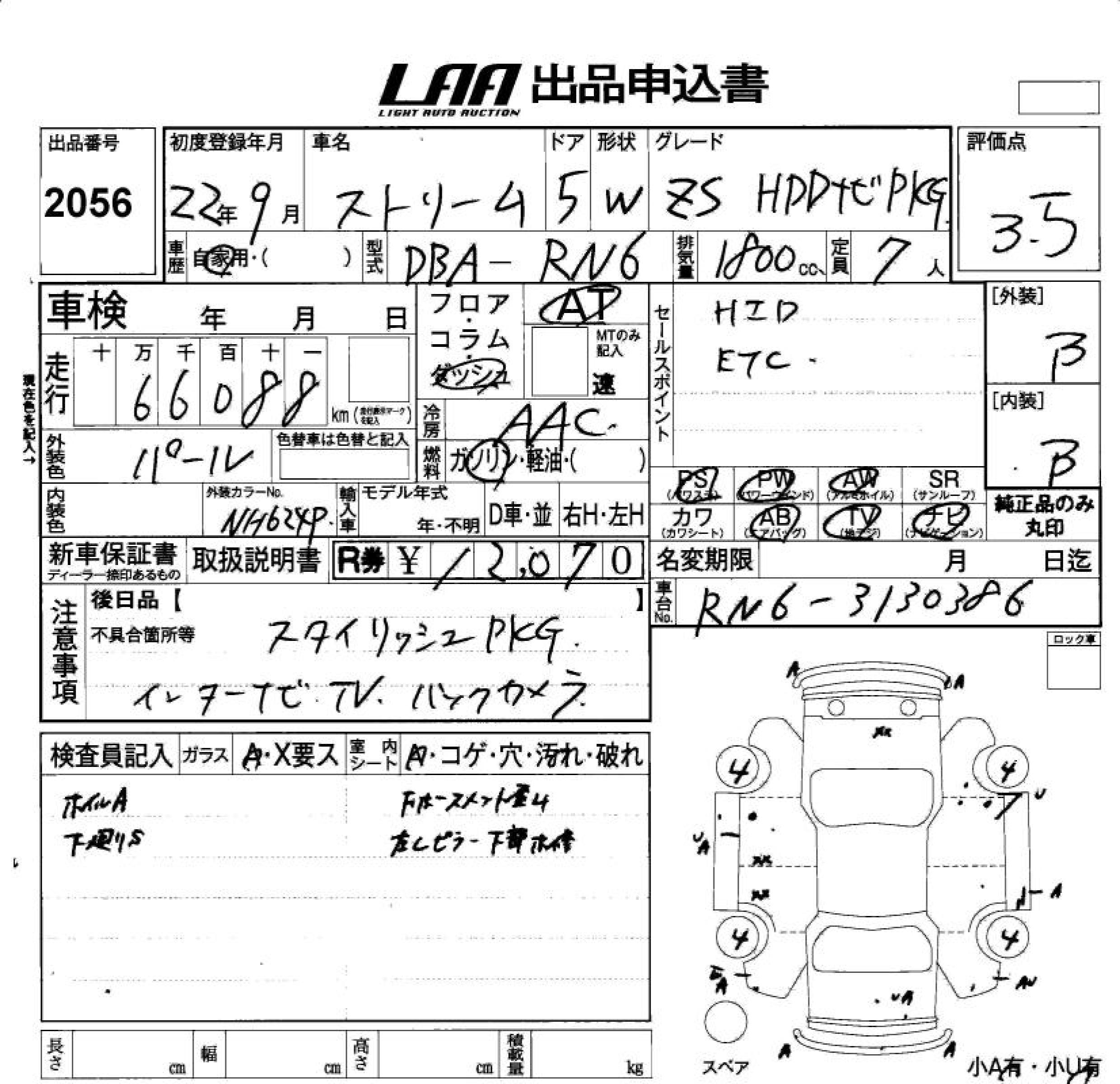HONDA STREAM ZS HDD NAVIGATION PACKAGE - лот 2056