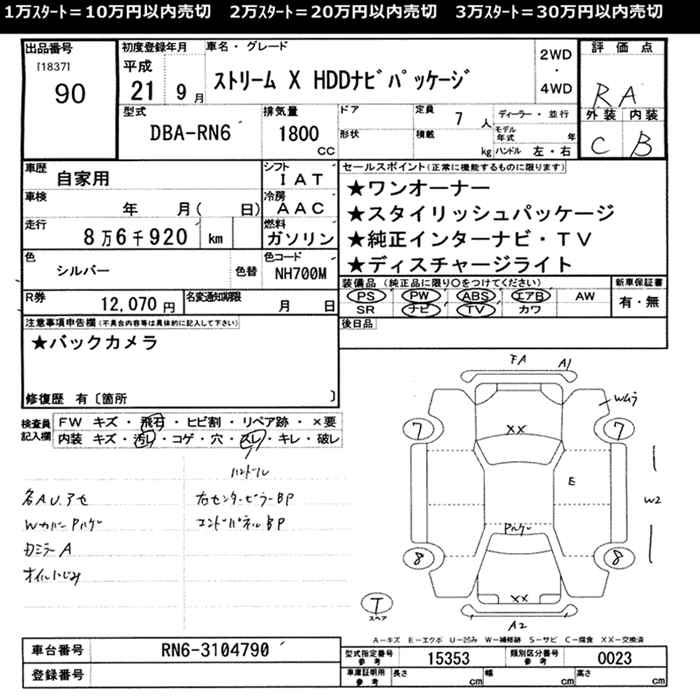 HONDA STREAM X HDD комплектация навигацией - лот 90