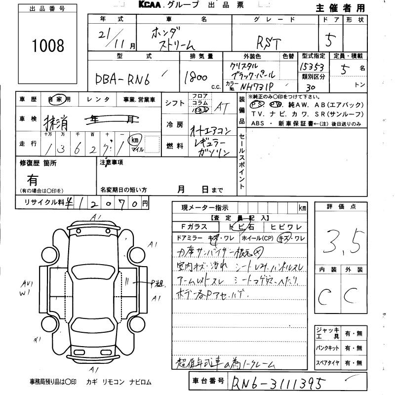 HONDA STREAM - лот 1008