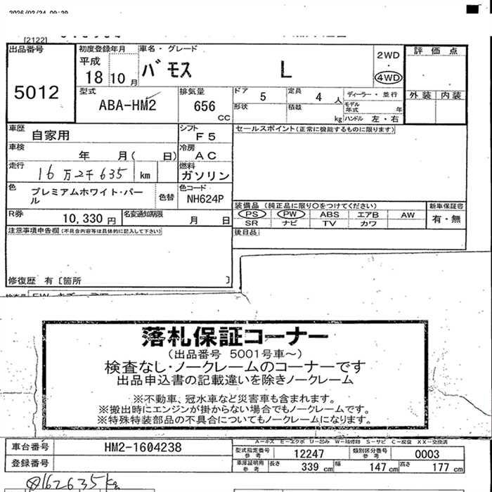 HONDA VAMOS - лот 5012