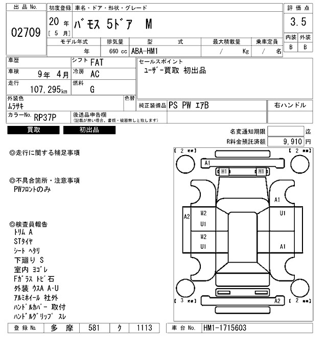 HONDA VAMOS - лот 2709