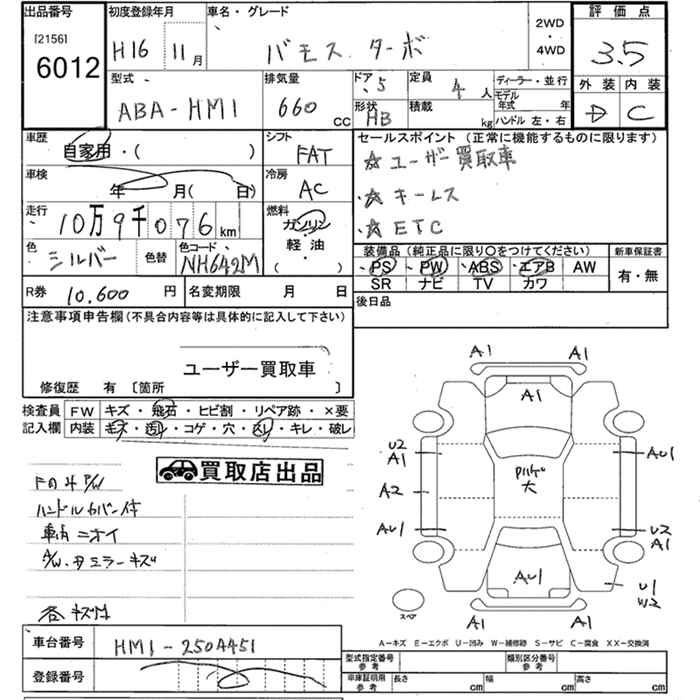 HONDA VAMOS - лот 6012