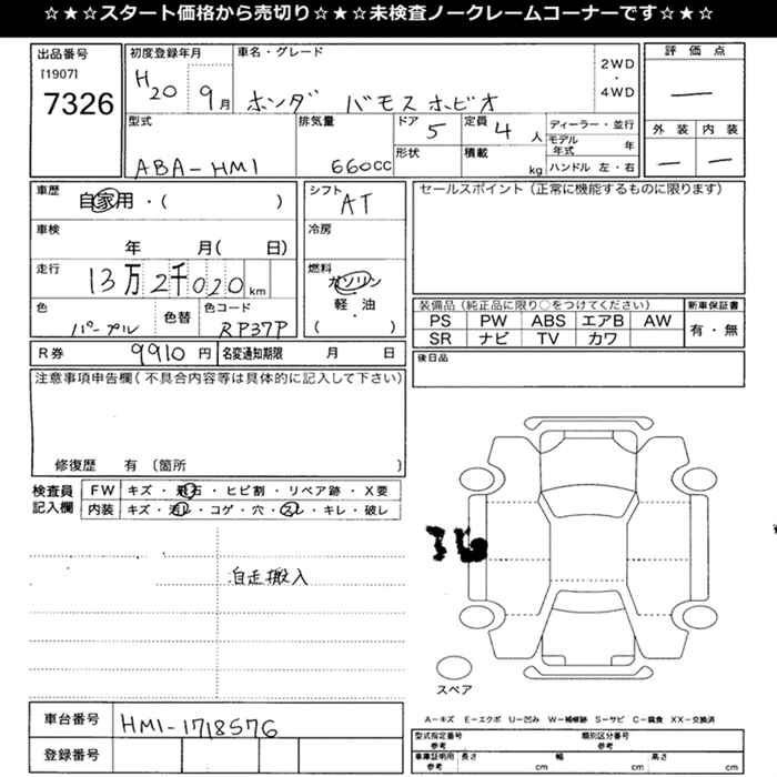 Все аукционы HONDA VAMOS