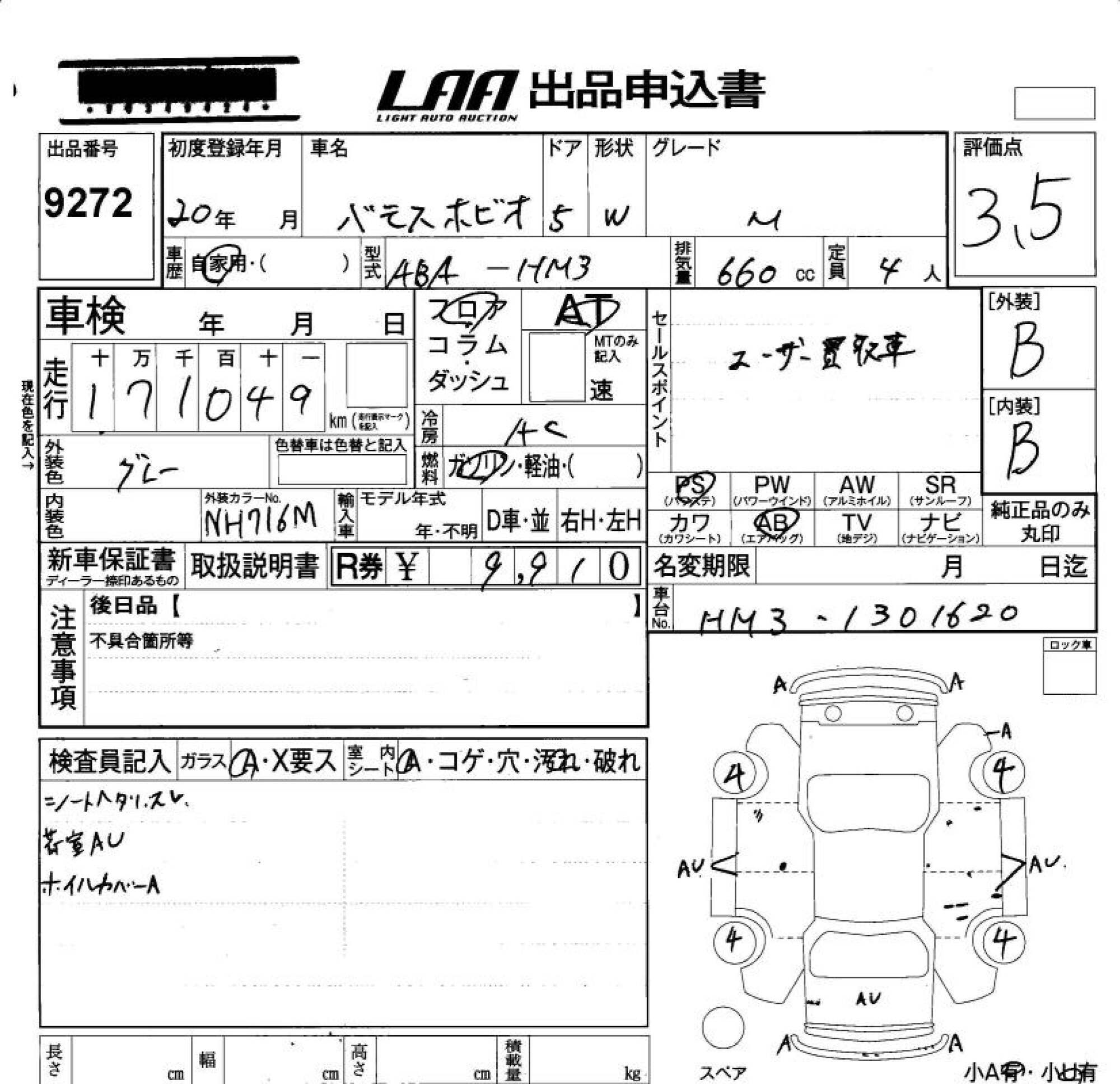 Все аукционы HONDA VAMOS HOBIO