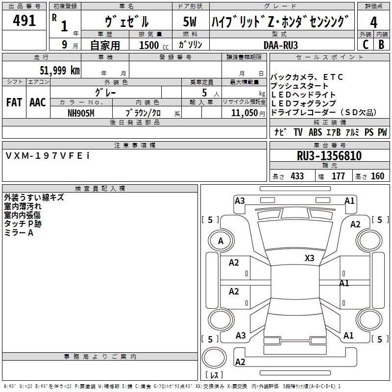 HONDA VEZEL - лот 491