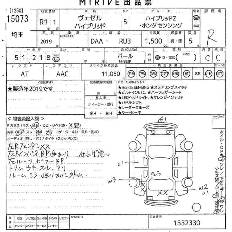 HONDA VEZEL - лот 15073