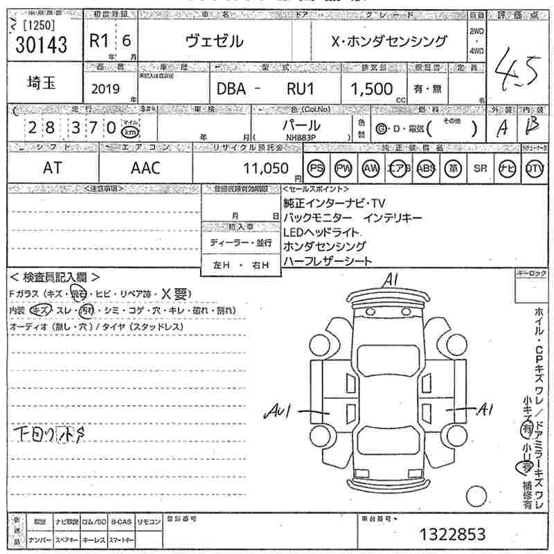 HONDA VEZEL - лот 30143