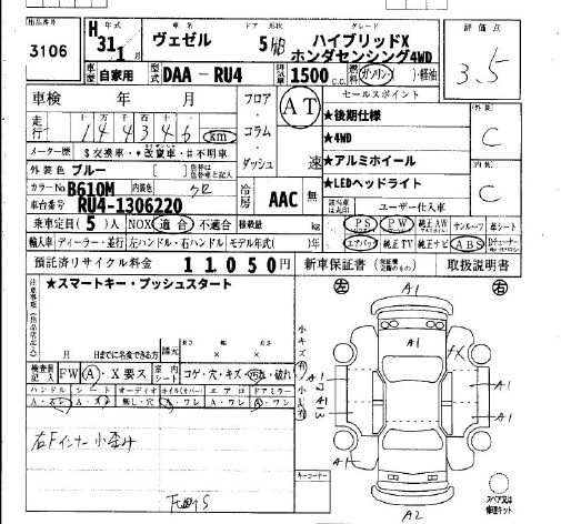 HONDA VEZEL - лот 3106