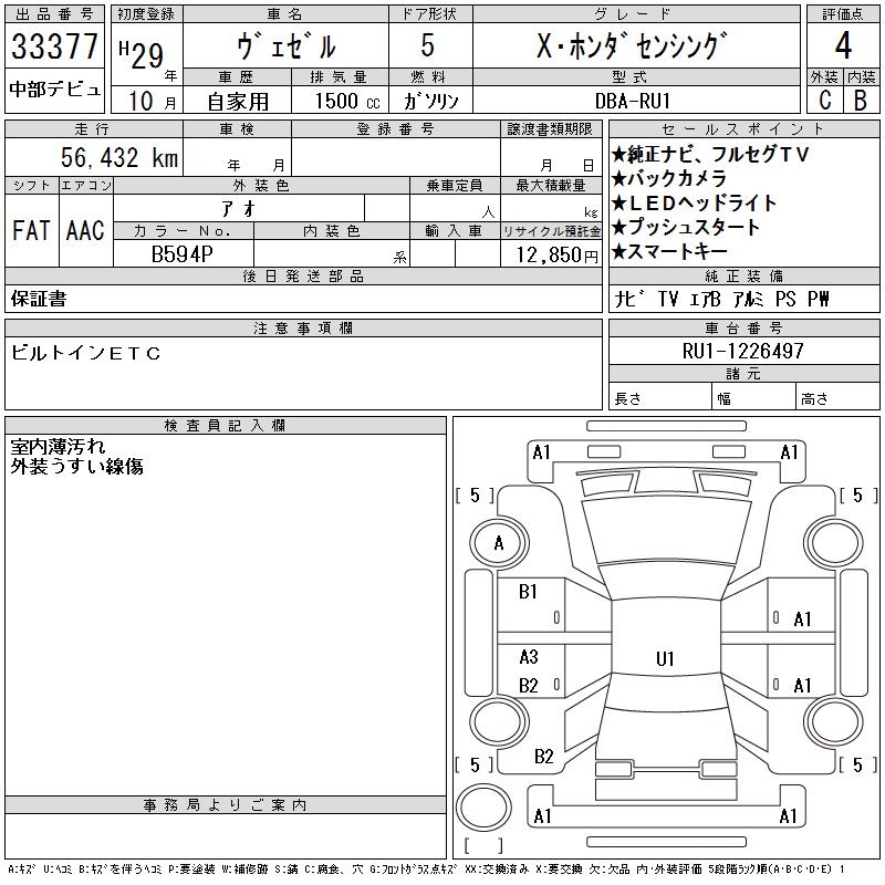 HONDA VEZEL - лот 33377