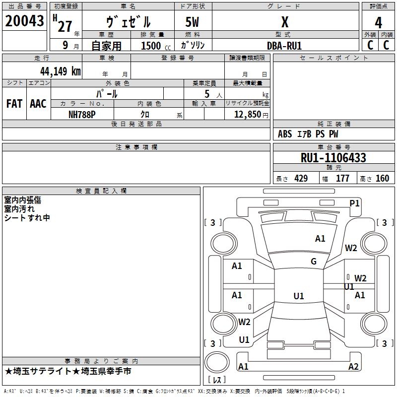 HONDA VEZEL - лот 20043