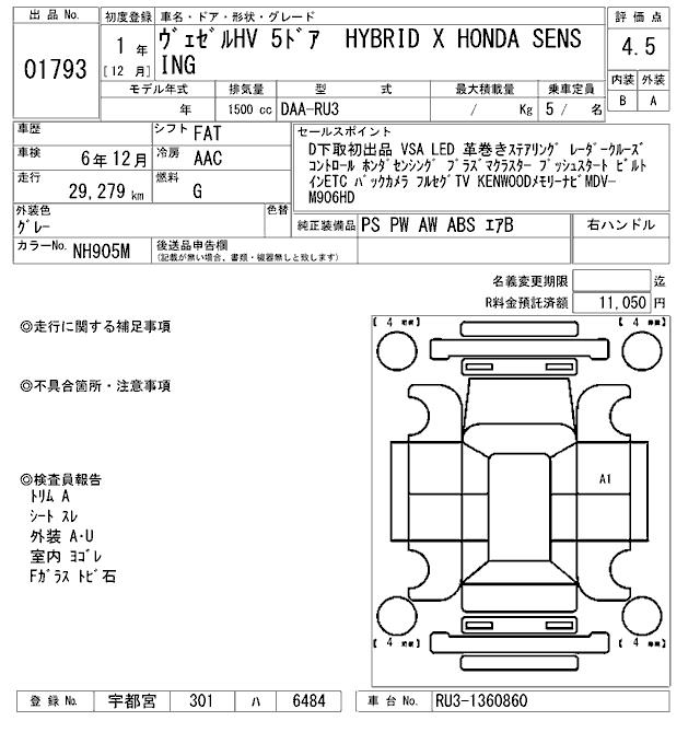 HONDA VEZEL - лот 1793
