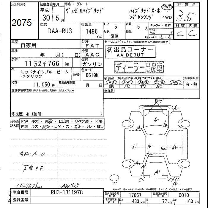 HONDA VEZEL - лот 2075