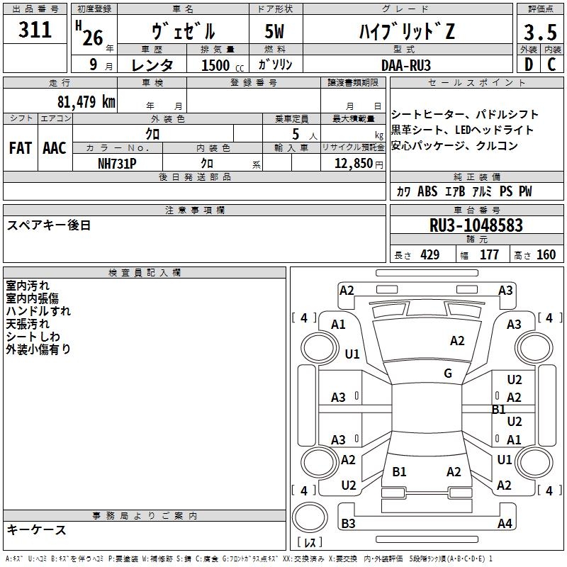 HONDA VEZEL - лот 311