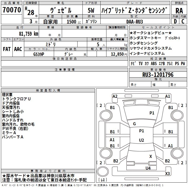 HONDA VEZEL - лот 70070