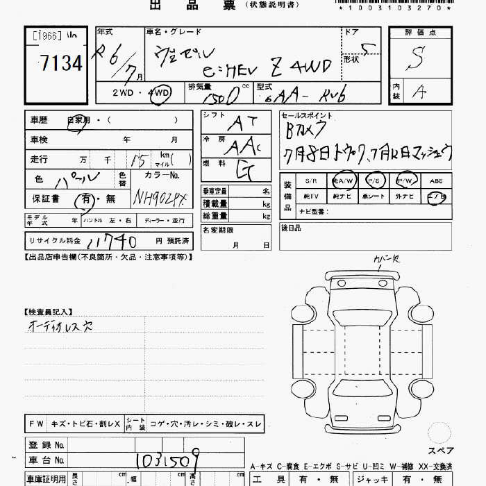 HONDA VEZEL - лот 7134