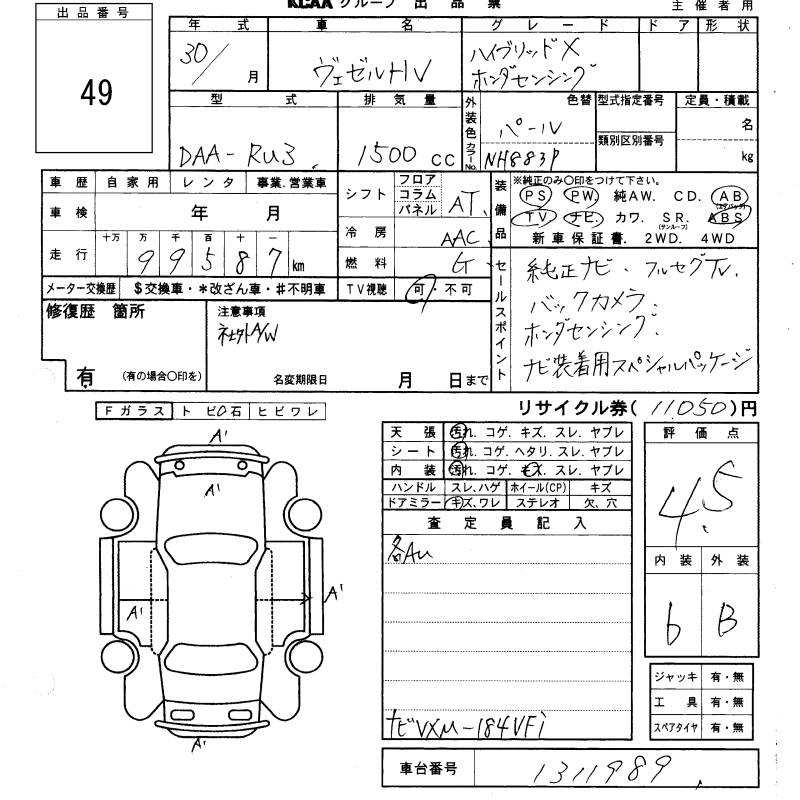 HONDA VEZEL - лот 49