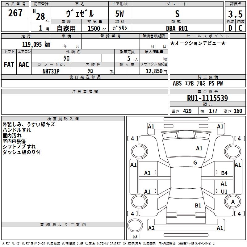 HONDA VEZEL - лот 267
