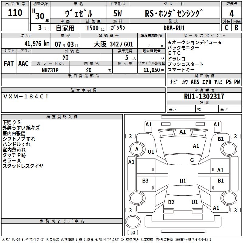 HONDA VEZEL - лот 110