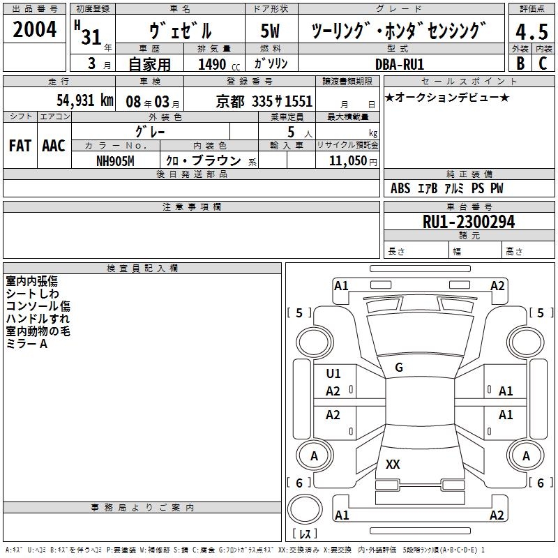 HONDA VEZEL - лот 2004