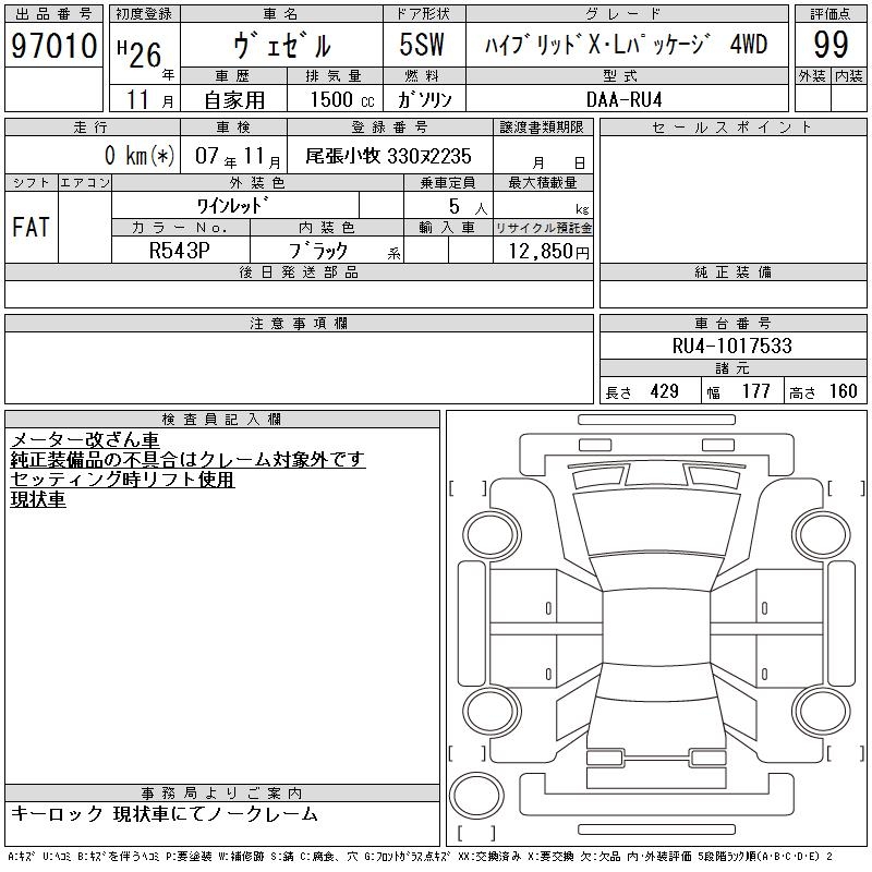 HONDA VEZEL - лот 97010