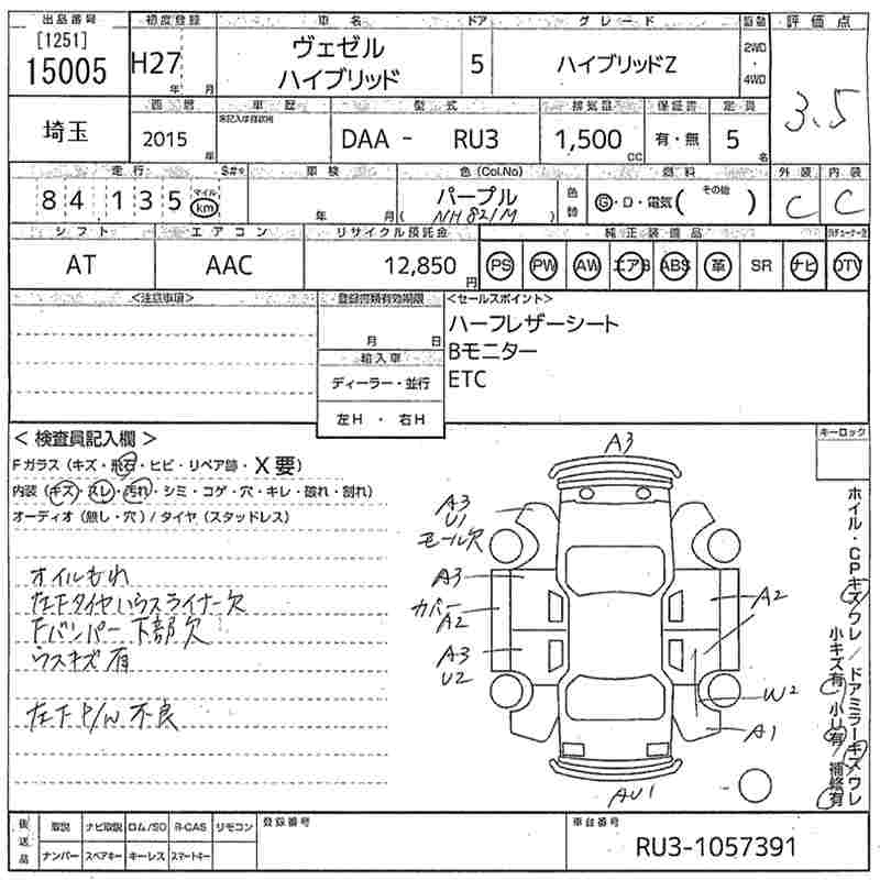 HONDA VEZEL - лот 15005