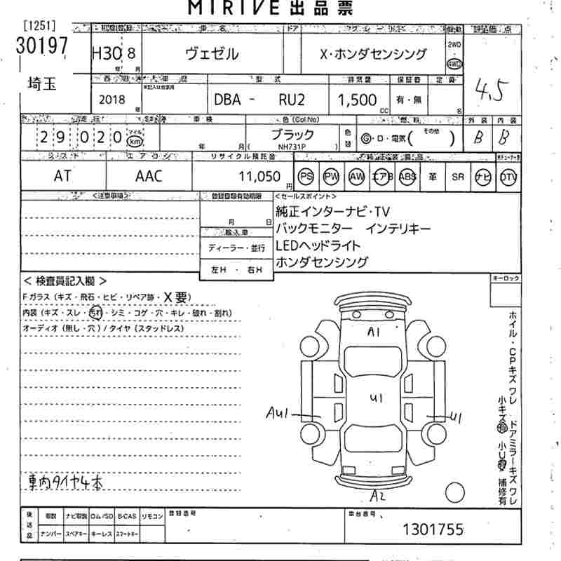 HONDA VEZEL - лот 30197