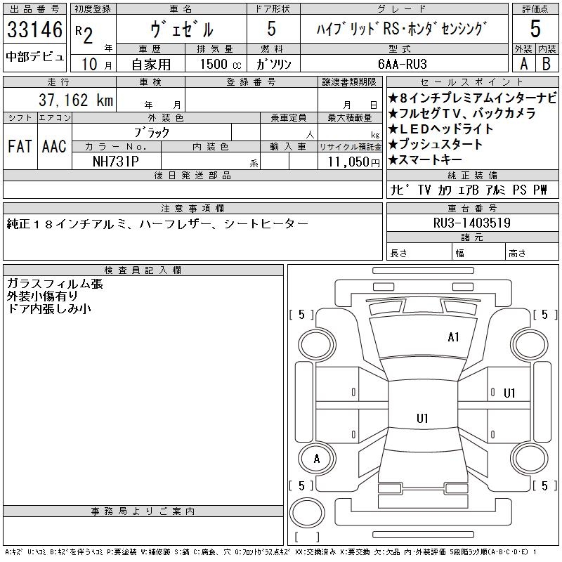 HONDA VEZEL - лот 33146