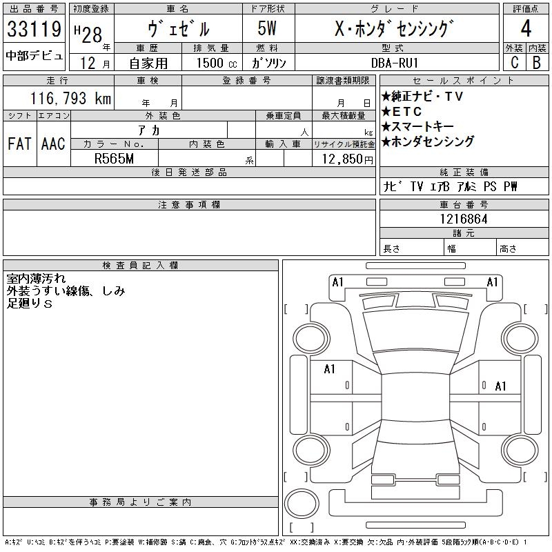 HONDA VEZEL - лот 33119