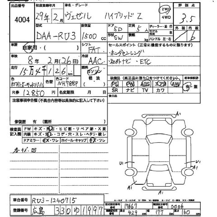 HONDA VEZEL - лот 4004
