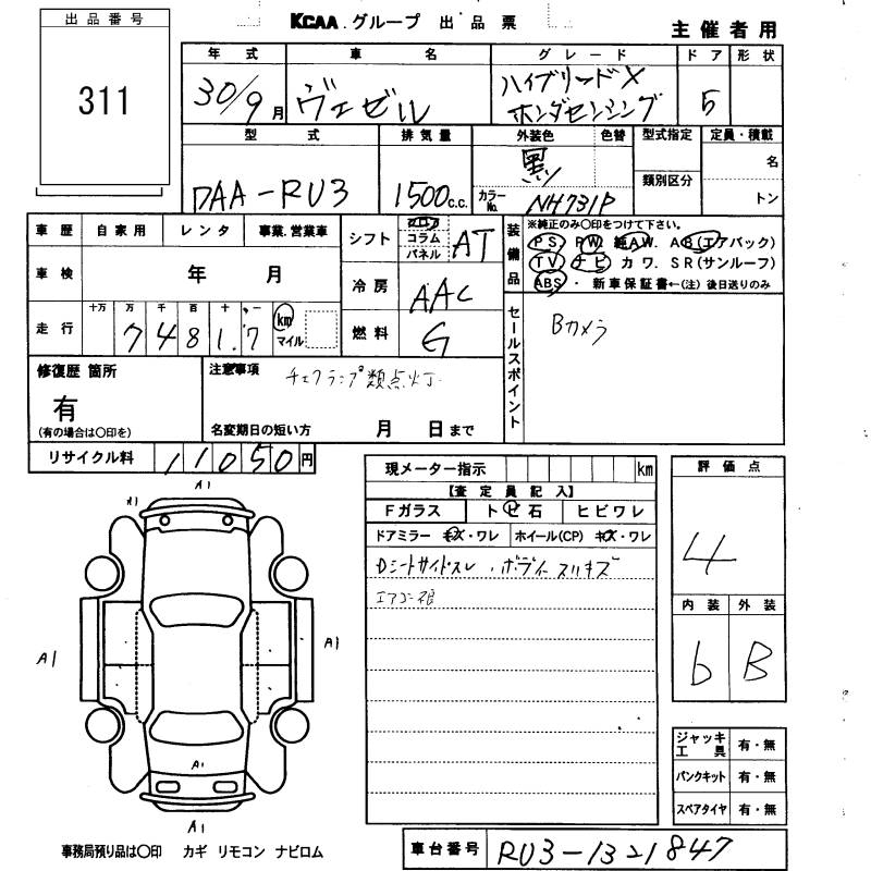 HONDA VEZEL - лот 311
