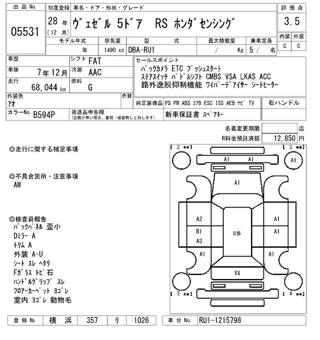 HONDA VEZEL - лот 5531