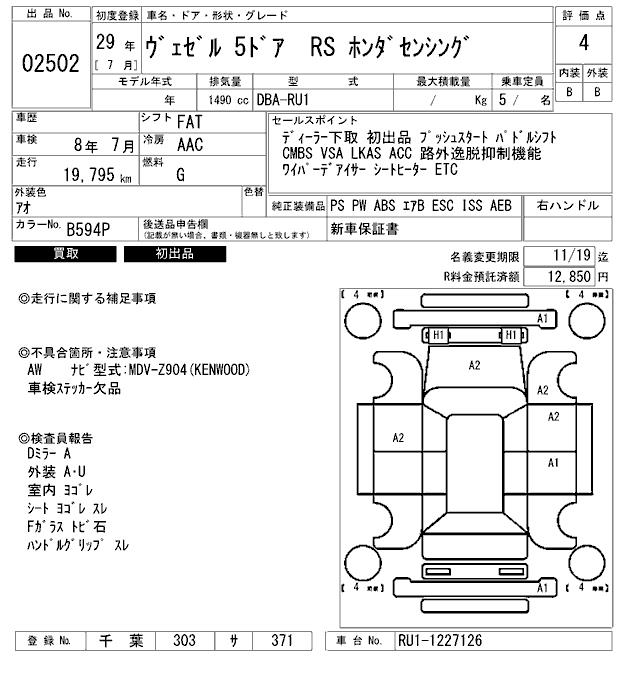 HONDA VEZEL - лот 2502