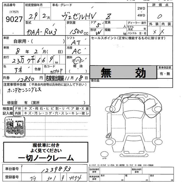 HONDA VEZEL - лот 9027