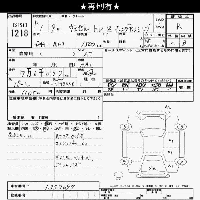 HONDA VEZEL - лот 1218