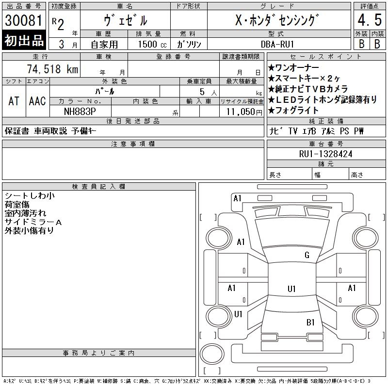 HONDA VEZEL - лот 30081