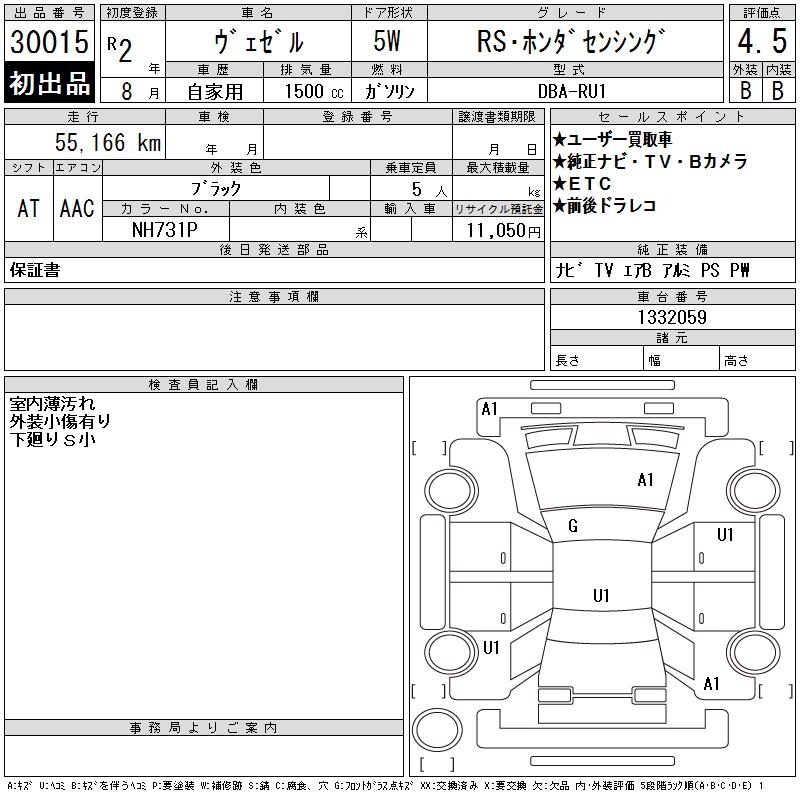 HONDA VEZEL - лот 30015