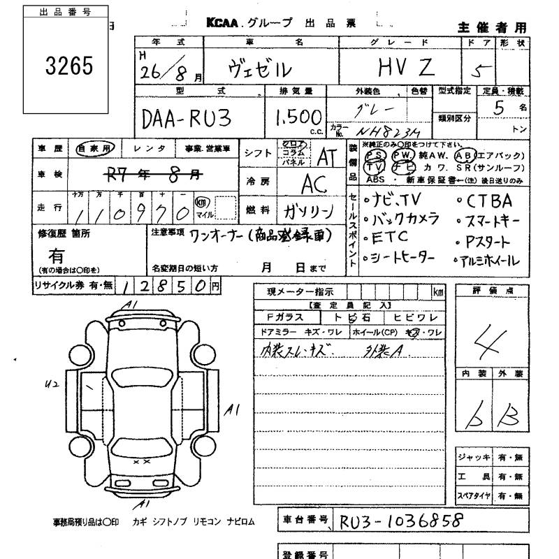 HONDA VEZEL - лот 3265