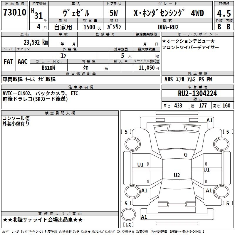 HONDA VEZEL - лот 73010