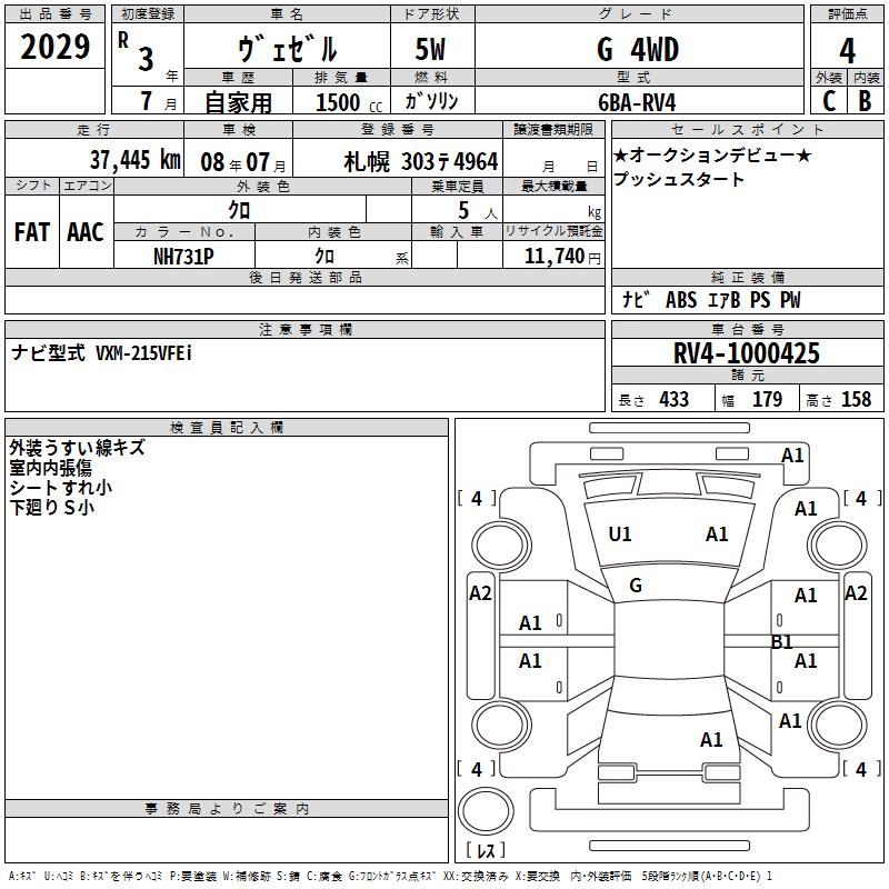 HONDA VEZEL - лот 2029