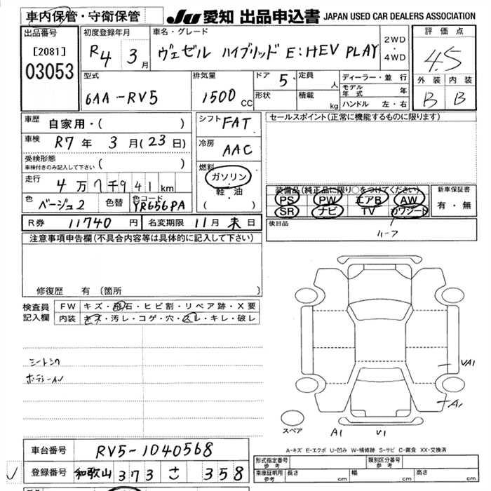 HONDA VEZEL - лот 3053