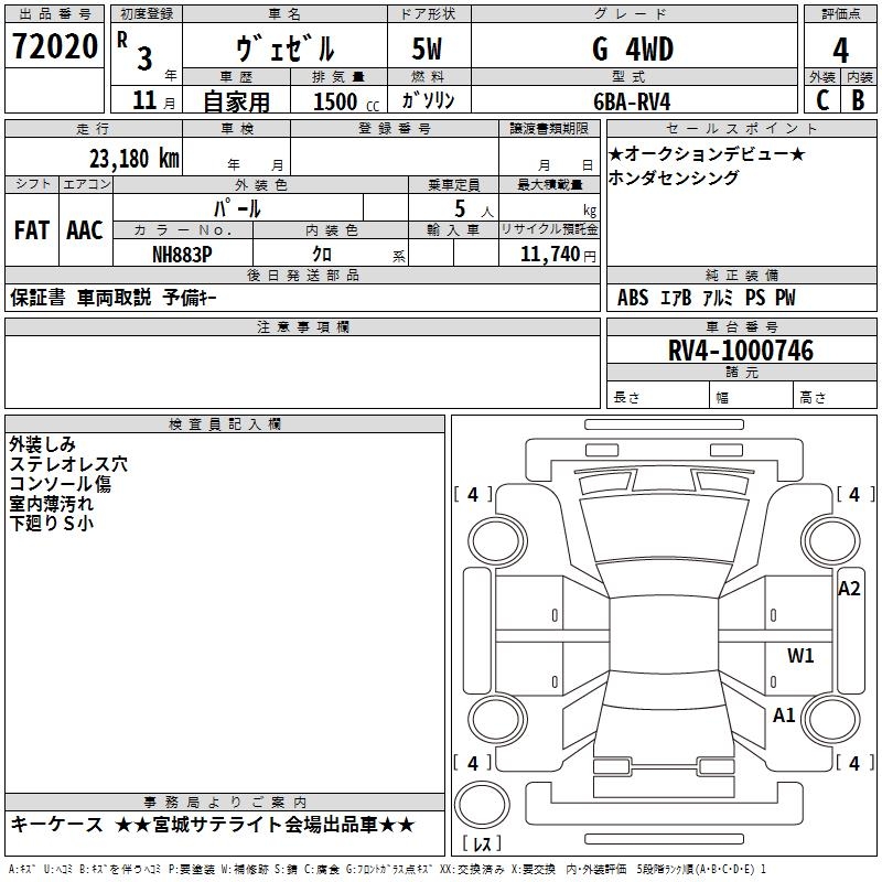 HONDA VEZEL - лот 72020