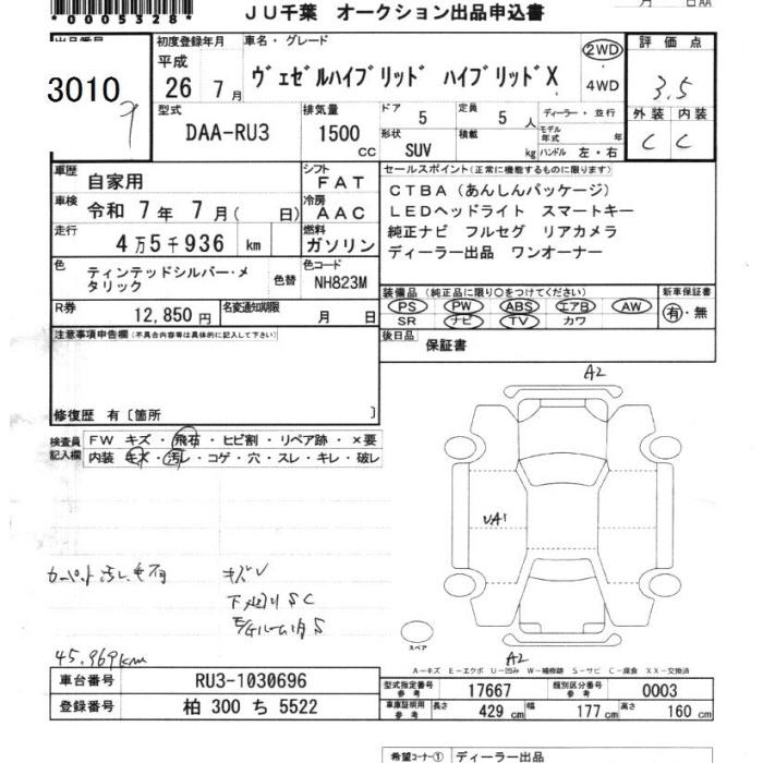 HONDA VEZEL - лот 3010