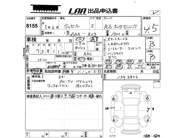 HONDA VEZEL - лот 8155