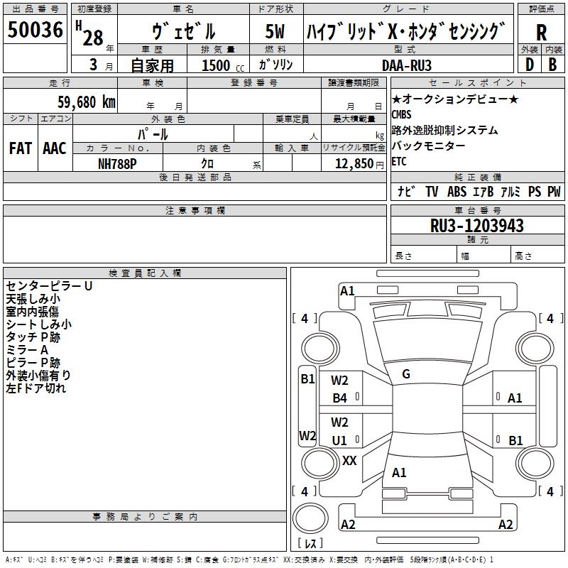 HONDA VEZEL - лот 50036