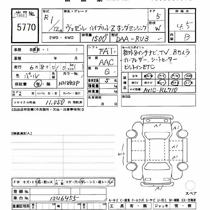 HONDA VEZEL - лот 5770