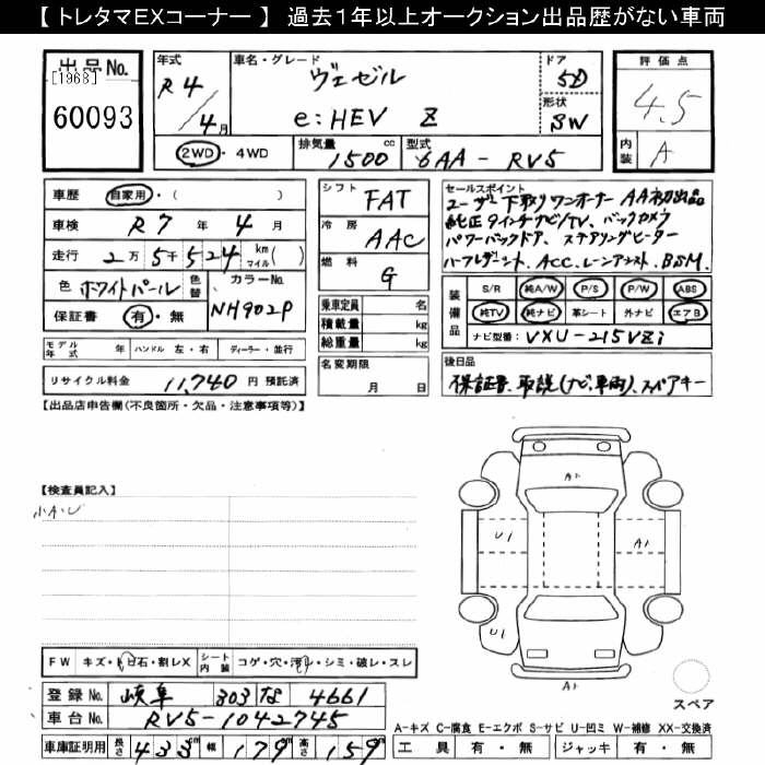 HONDA VEZEL - лот 60093