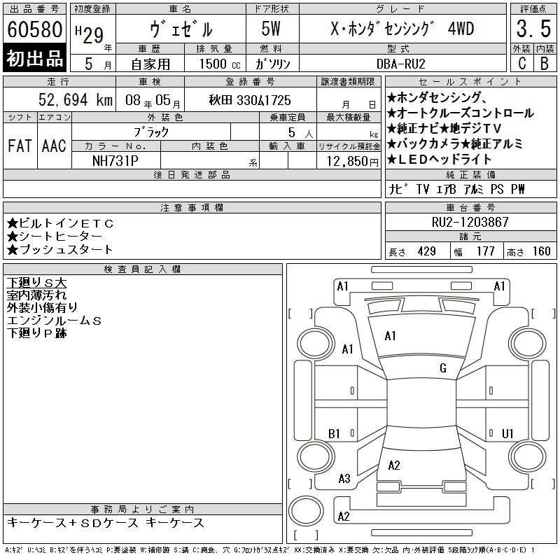 HONDA VEZEL - лот 60580